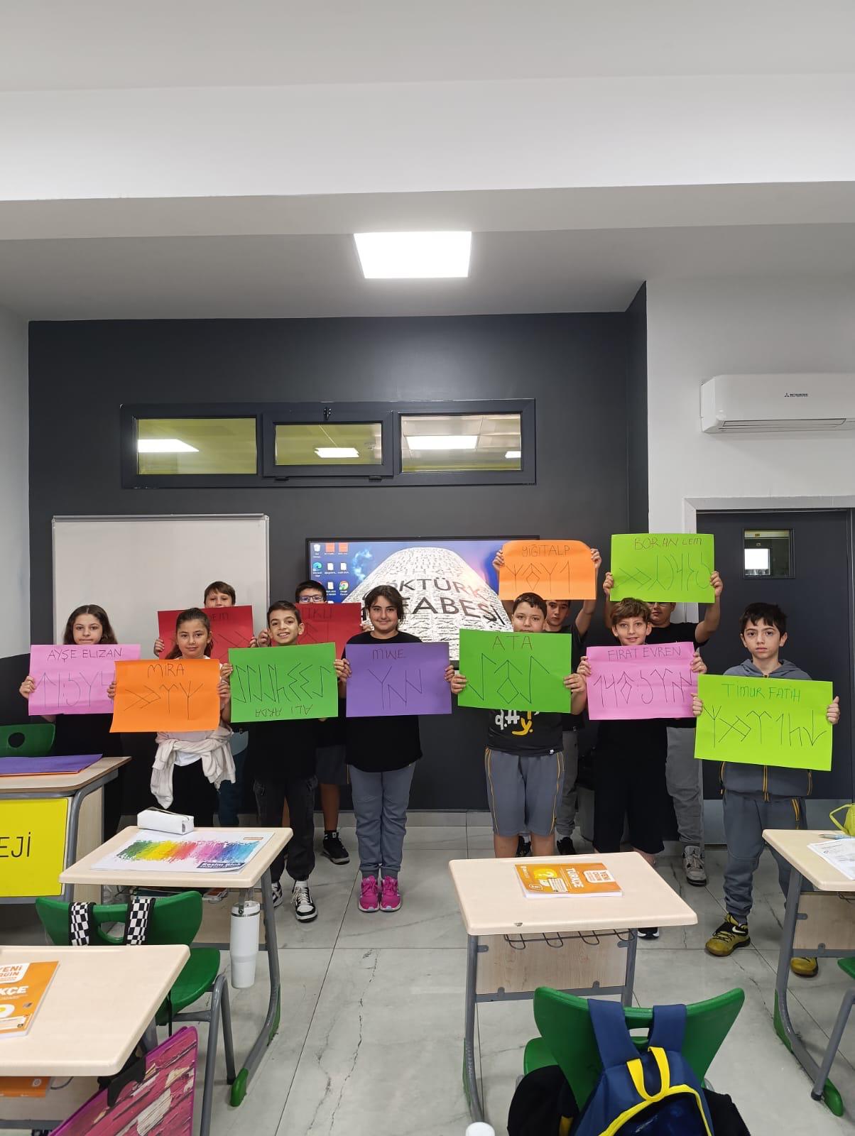 Etkinliklerimiz kapsamında, Türkçemizin tarihsel gelişimini anlatan çeşitli sunum ve çalışmalar gerçekleştirildi. Lise öğrencilerimiz tarafından Orhun alfabesiyle yapılan kil çalışması okulumuzda sergilenerek büyük ilgi gördü. Gün boyunca düzenlenen etkinliklerle dilimizin önemi bir kez daha vurgulandı.