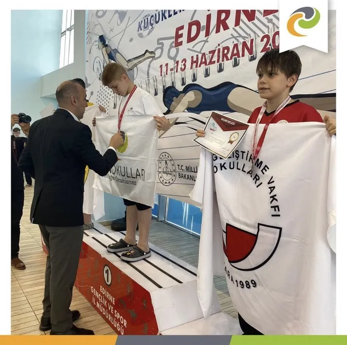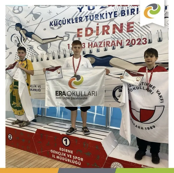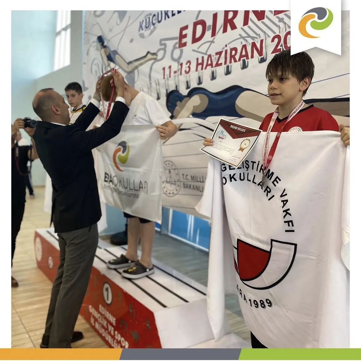 Okulumuzun öğrencilerinden Okul Sporları Küçük Erkekler Yüzme'de 200 metre karışık Marmara bölge birincisi, 50 metre kelebek Türkiye birincisi, 100 metre kelebek Türkiye birincisi ve 200 metre serbest Türkiye birincisi olan Eymen Batu ÖZCAN’ı yürekten kutlarız.