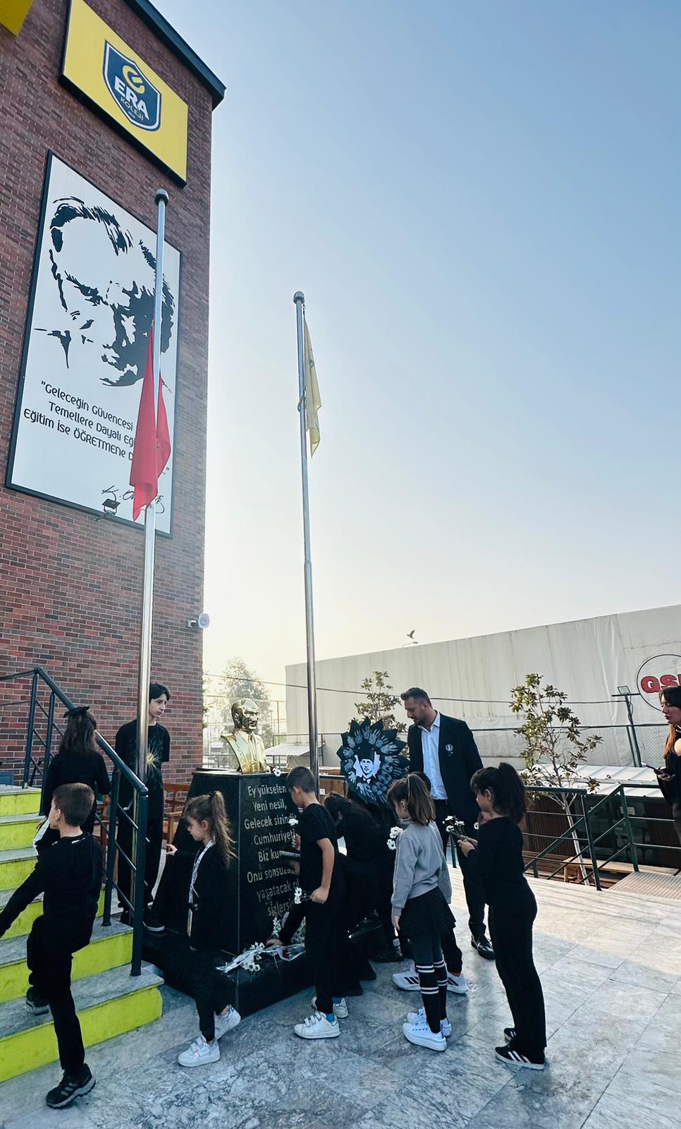 ERA Koleji İzmir Mavişehir Kampüsü’nde, Cumhuriyetimizin kurucusu Ulu Önder Mustafa Kemal Atatürk, ebediyete intikalinin 87. yılında büyük bir saygı, sevgi ve özlemle anıldı. Öğrenciler, öğretmenler ve velilerin katılımıyla gerçekleşen tören, Atatürk’ün ilke ve devrimlerine olan bağlılığın ve minnettarlığın bir kez daha güçlü bir şekilde ifade edildiği anlamlı bir gün oldu.