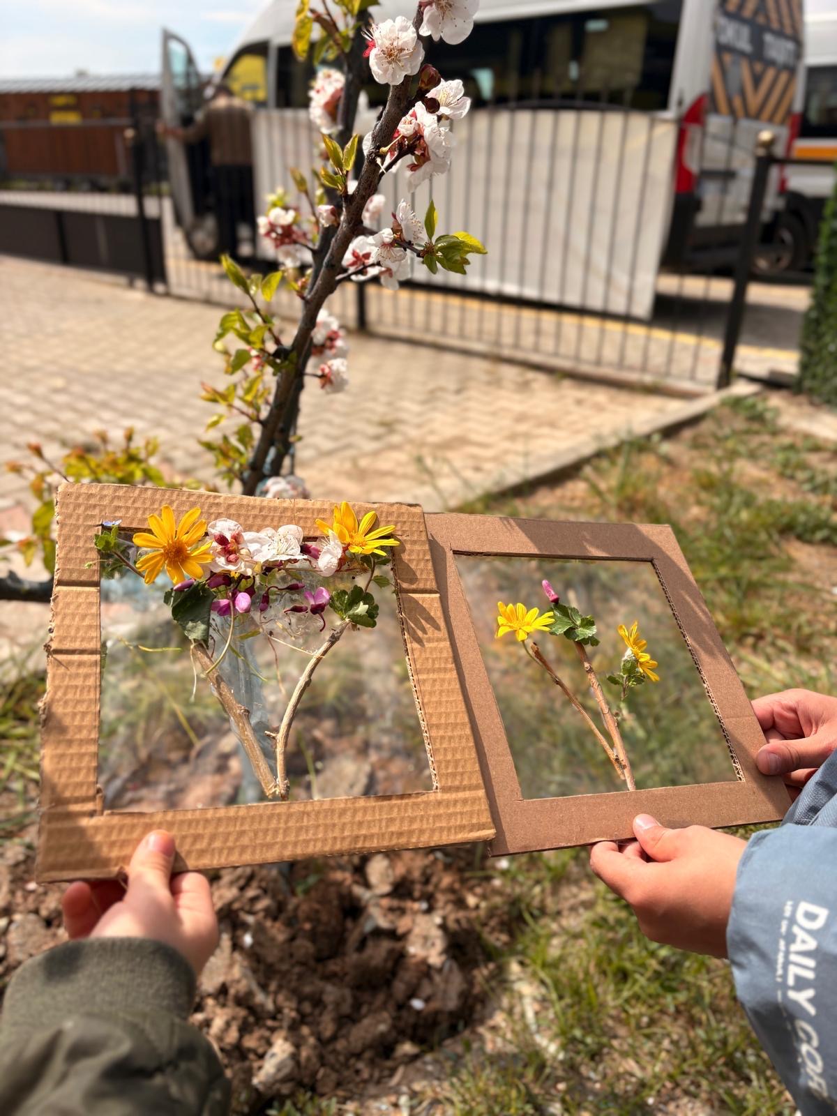 Etkinlik çerçevesinde öğrenciler, doğa yürüyüşüne çıkarak çevrelerini dikkatle gözlemledi; farklı bitki ve doğal materyalleri keşfetme fırsatı buldu. Topladıkları çiçek ve dallarla kendi doğa çerçevelerini tasarlayan öğrenciler, yaratıcılıklarını ortaya koyarak özgün çalışmalar hazırladı.