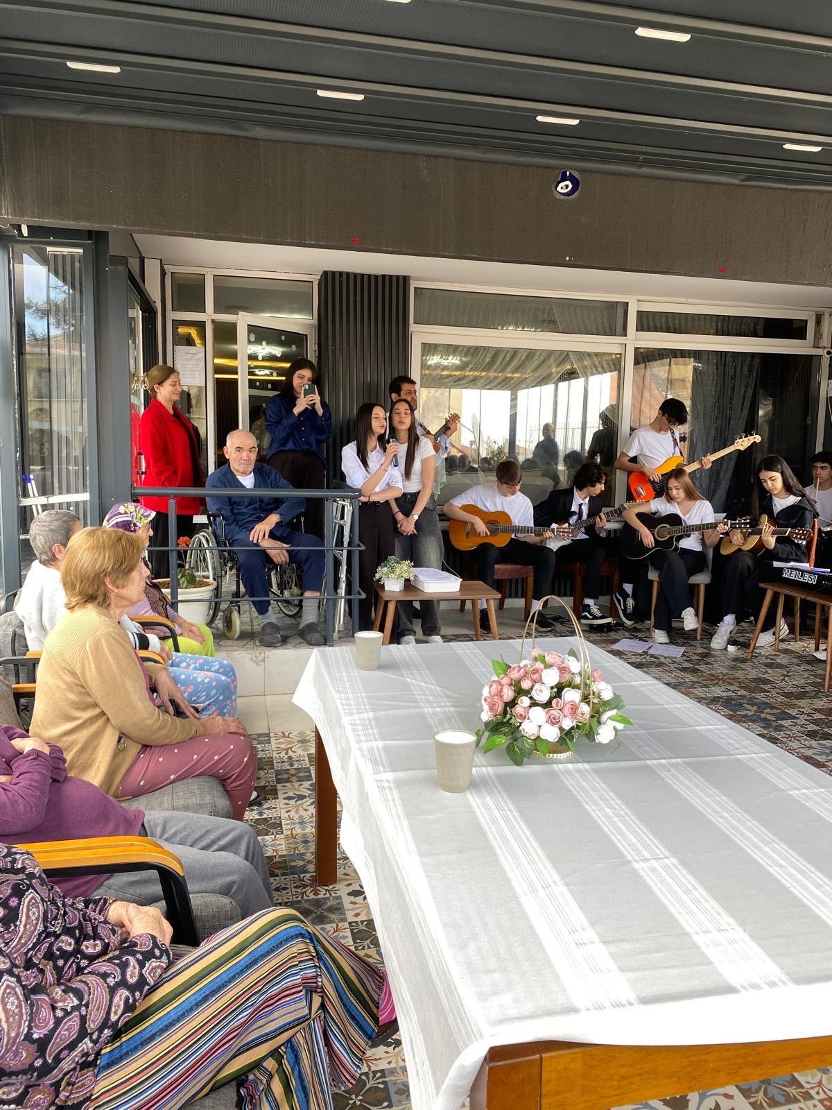 Ziyaret kapsamında öğrenciler, koro çalışmalarıyla seslendirdikleri şarkılar eşliğinde huzurevi sakinleriyle birlikte keyifli anlar paylaştı. Müzik aracılığıyla geçmişe uzanan bu yolculukta, zaman zaman duygusal anlar yaşanırken samimi gülümsemeler de günün en güzel anlarına eşlik etti.