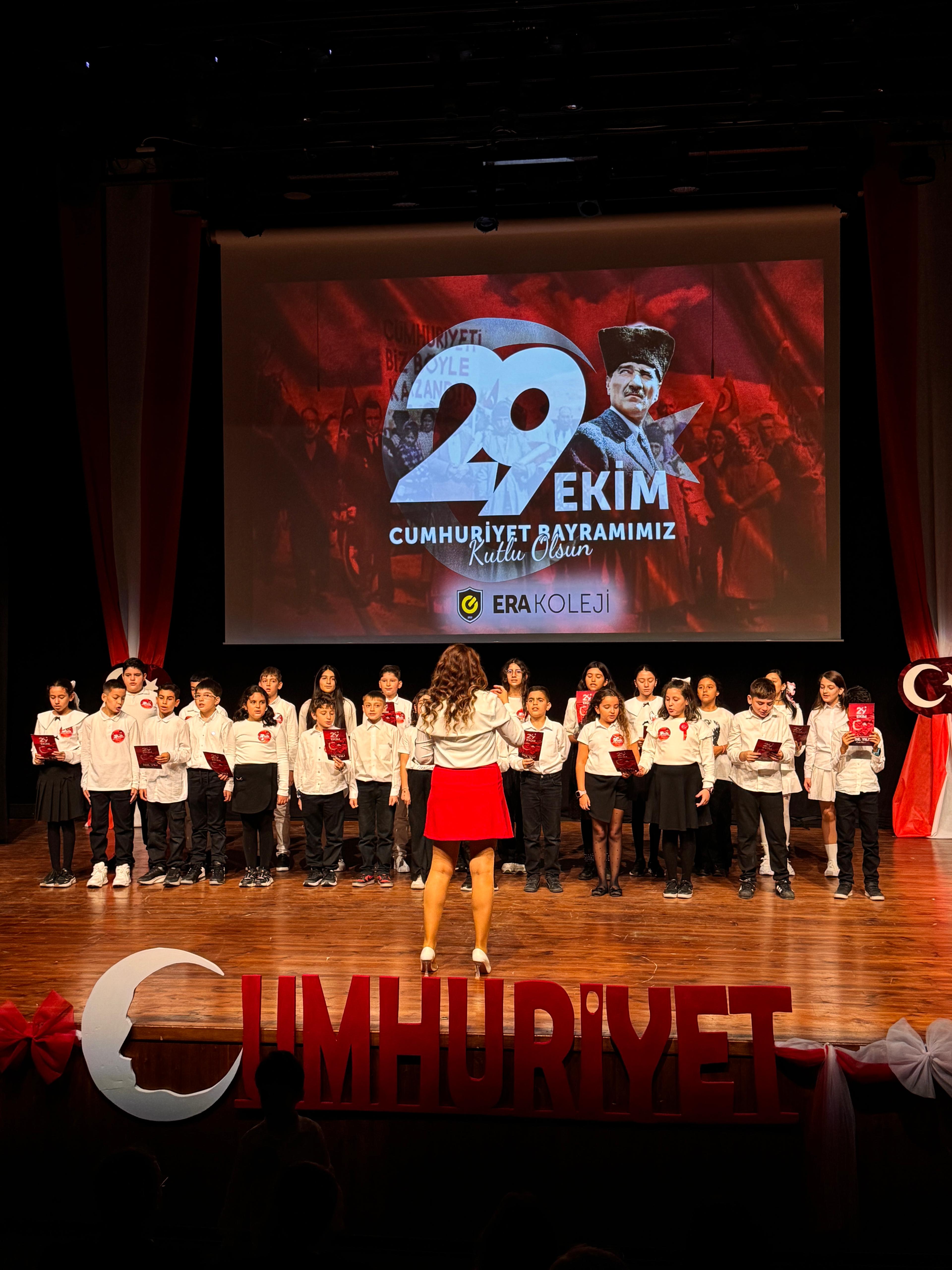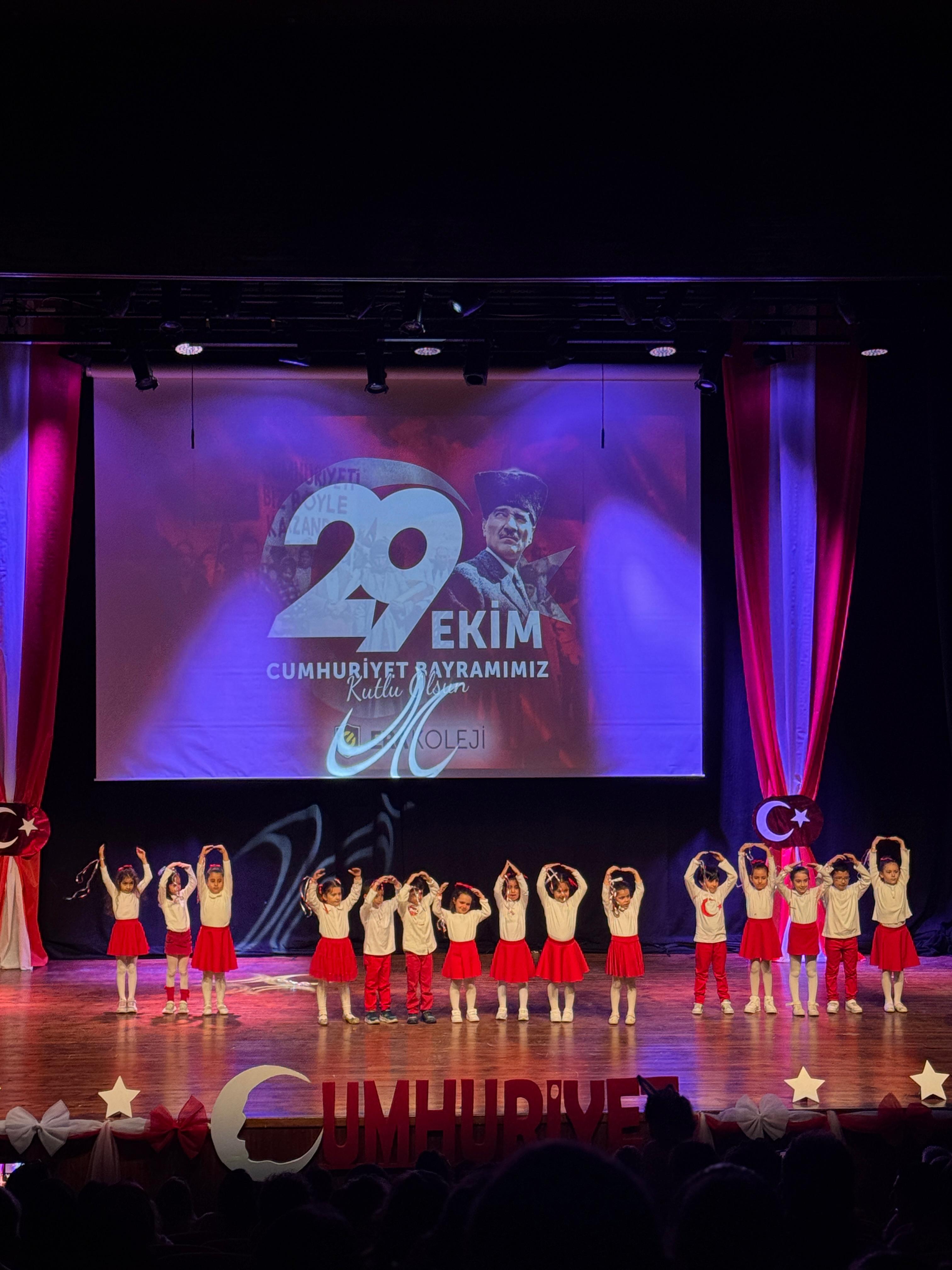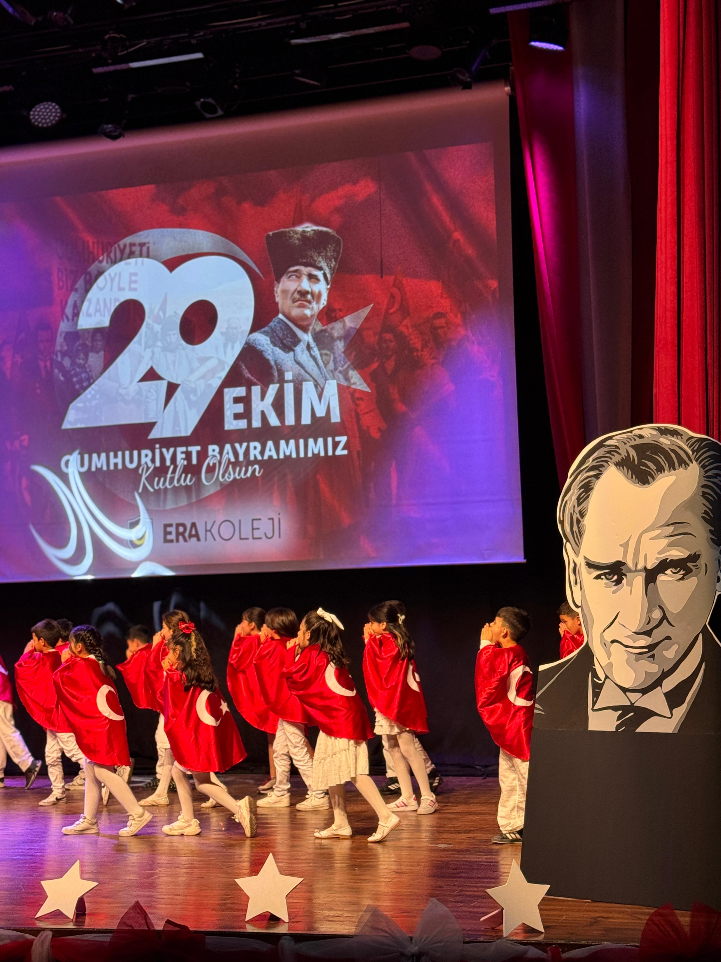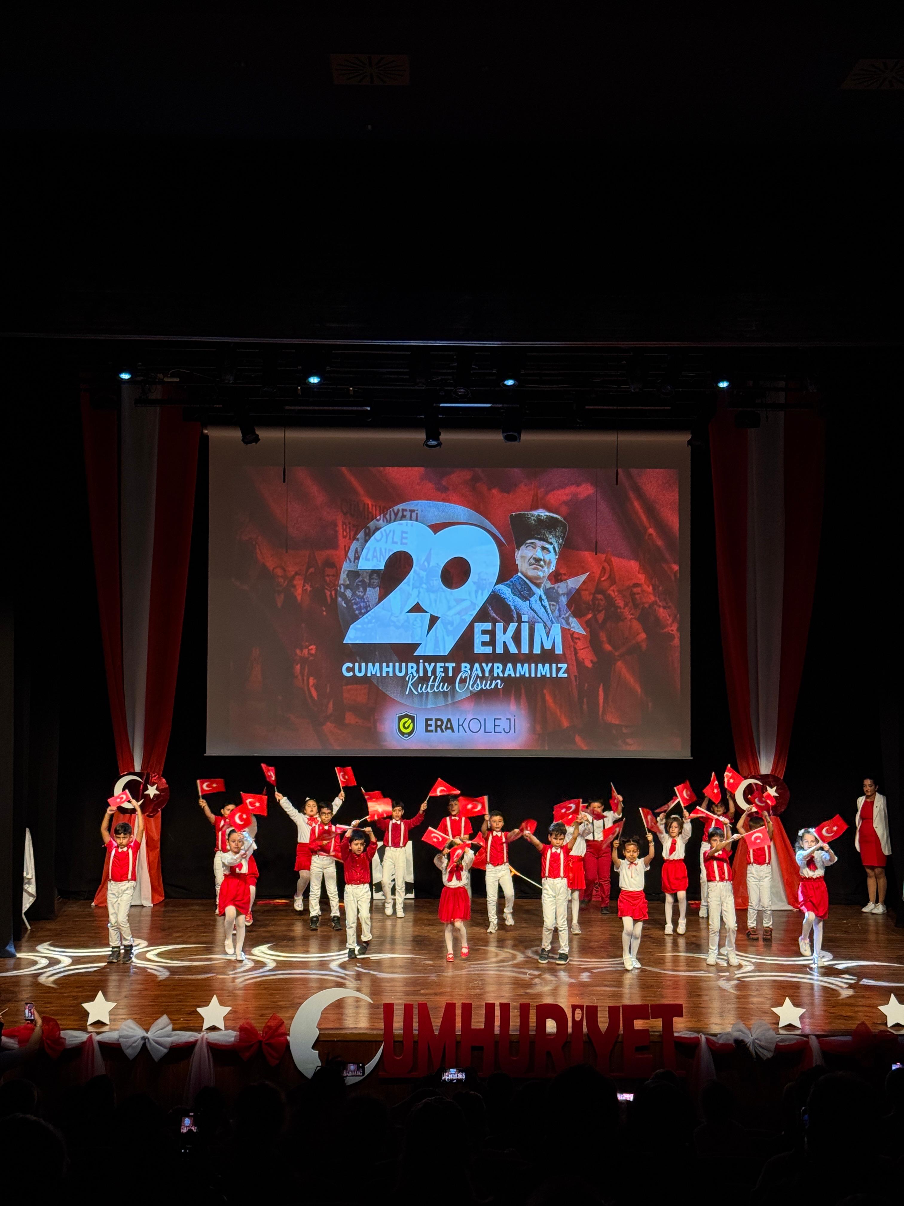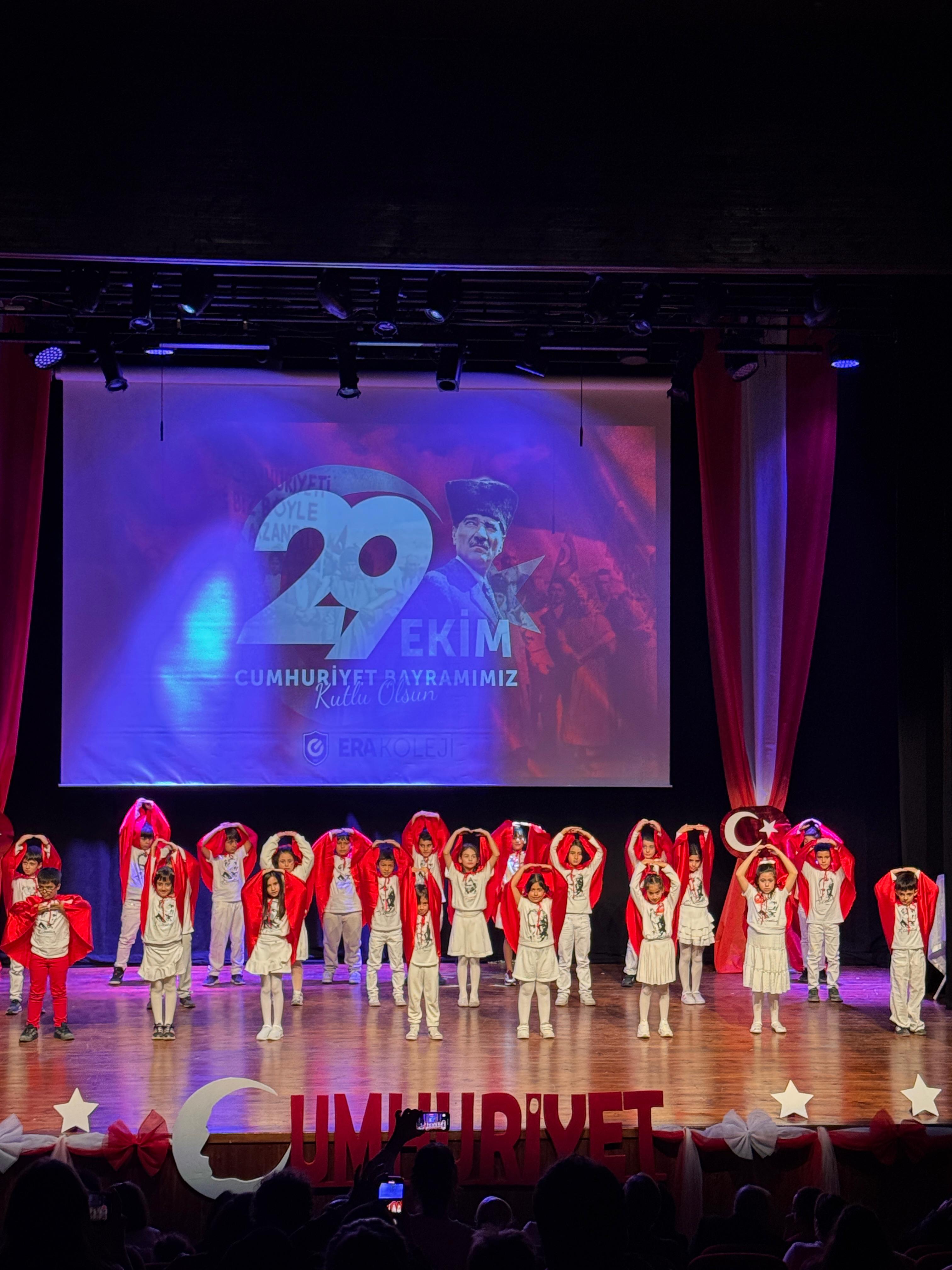 ERA Koleji Sancaktepe Kampüsünde 29 Ekim Cumhuriyet Bayramı, öğrencilerimizin özenle hazırladığı gösterilerle büyük bir gurur ve mutluluk içinde kutlandı. Günün anlam ve önemini yansıtan sahne performansları, salondaki velilerimize ve öğretmenlerimize unutulmaz anlar yaşattı.
