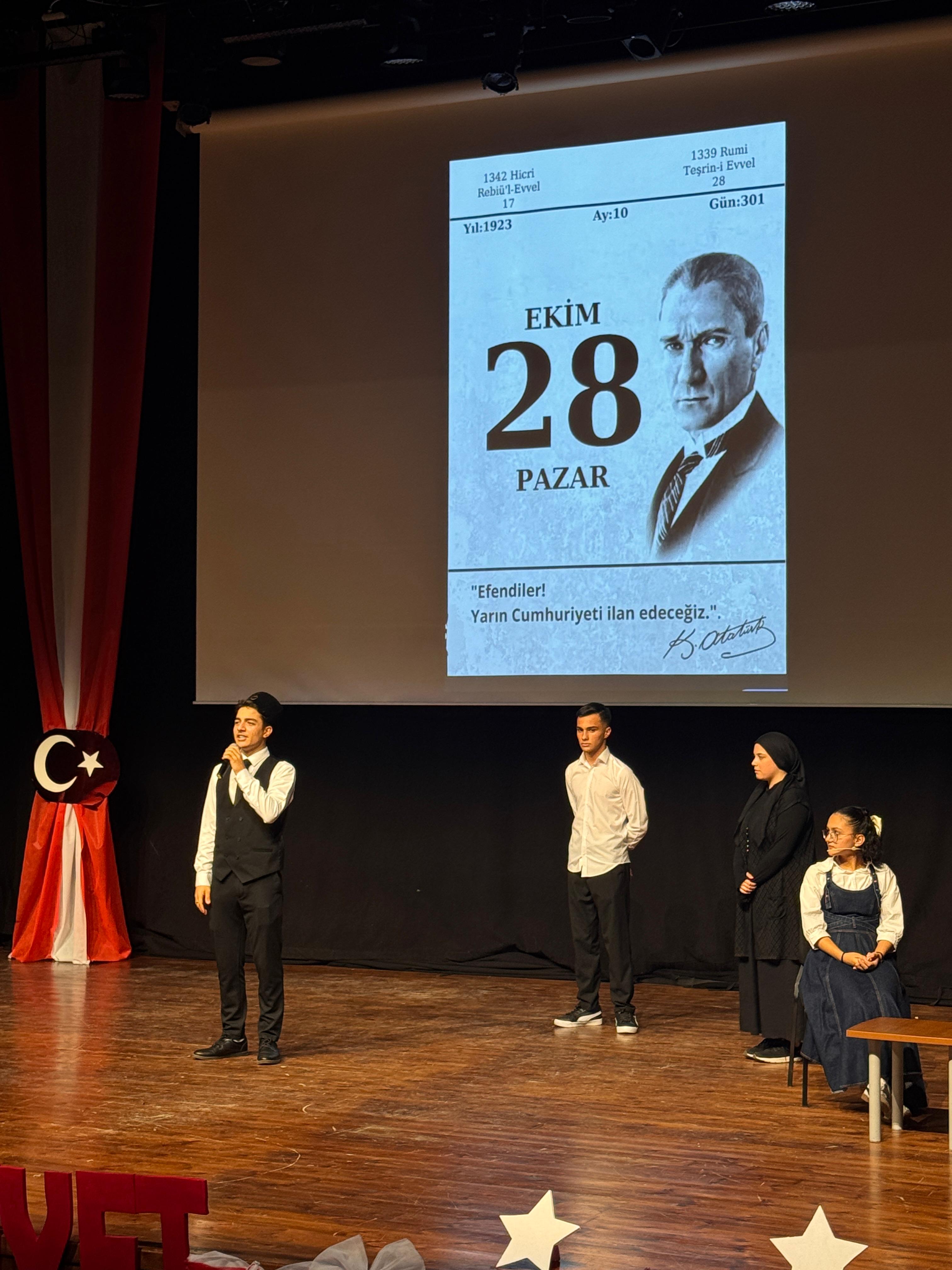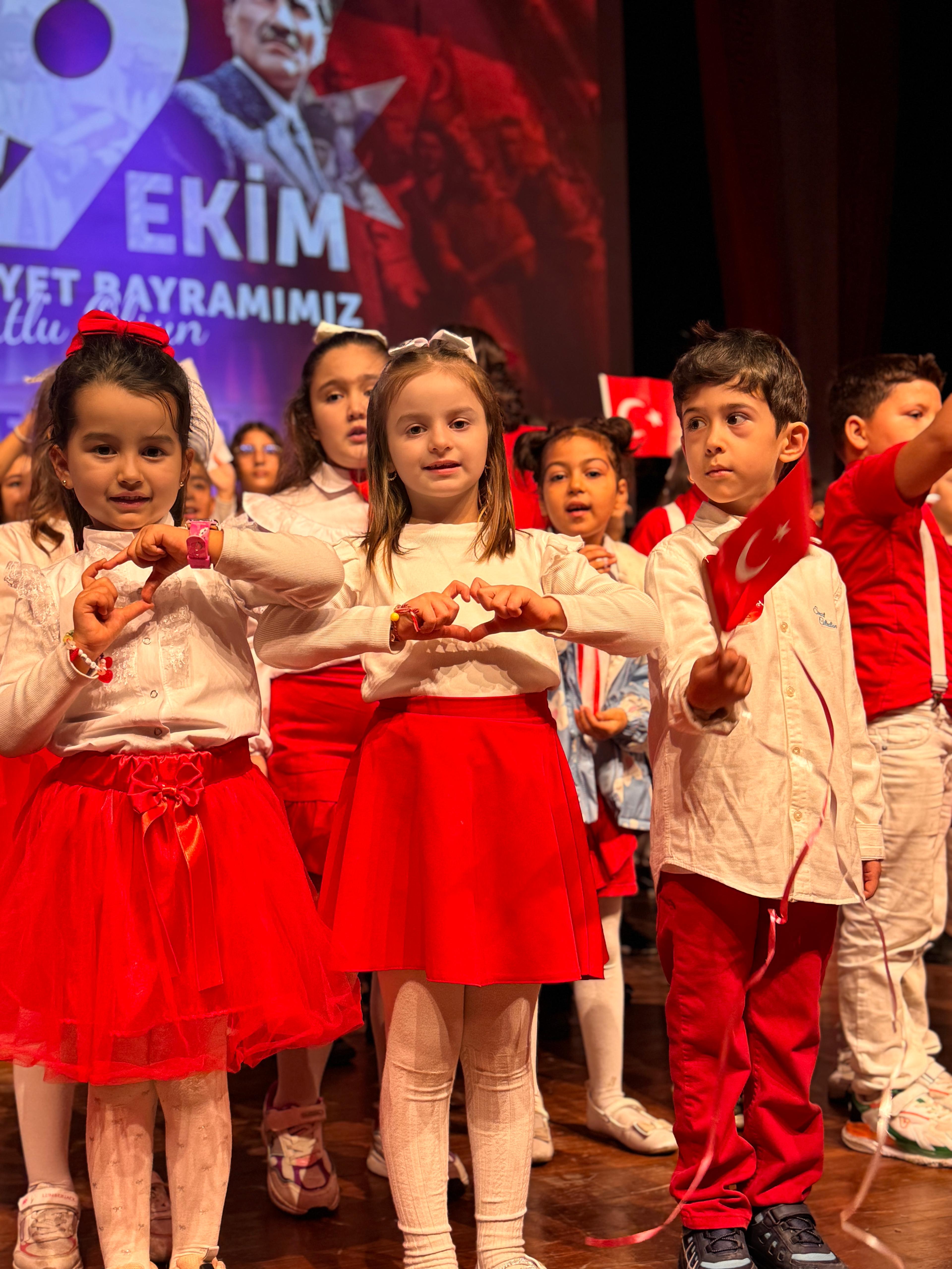Öğrencilerimiz, Ulu Önder Mustafa Kemal Atatürk’ün bizlere emanet ettiği Cumhuriyeti ilelebet yaşatma kararlılıklarını coşku dolu etkinliklerle ifade ettiler.